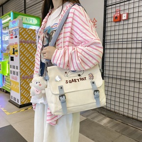 耶语//亚马逊跨境货源沉思的小熊帆布单肩包包女春秋...