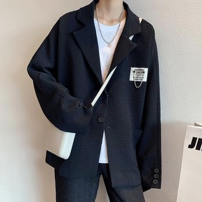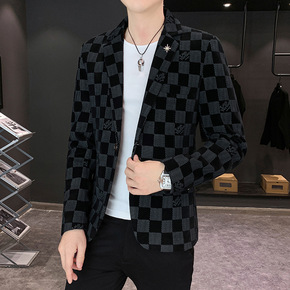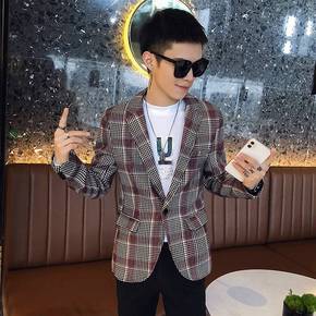 格子小西装外套男士西服2021新款韩版潮流痞帅炸街...