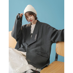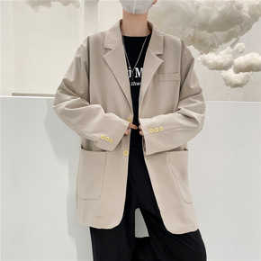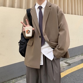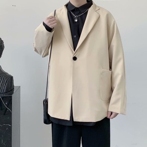 港风宽松西装男春秋季复古上衣韩版潮流单西外套男休闲...