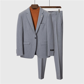 团购西服套装男士修身商务西装职业装纯色新郎伴郎服单...