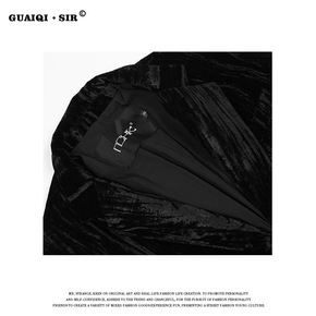 高级感炸街复古丝绒休闲西装外套男设计感小众冷淡风痞...