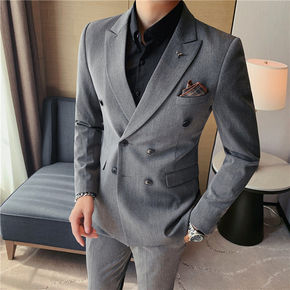 双排扣西服套装男韩版潮休闲西装外套冬季新郎结婚礼服...