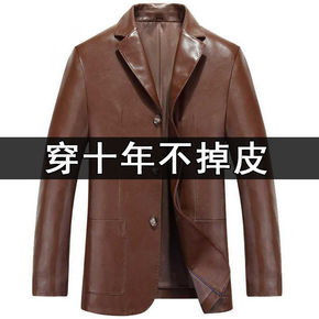秋冬新款海宁真皮绵羊皮衣男休闲加绒西装领皮夹克男士...