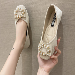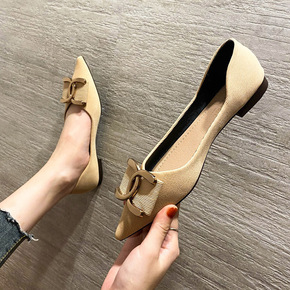 浅口平底鞋尖头瓢鞋2021春季新款小香风单鞋女平跟...