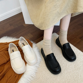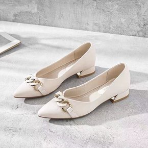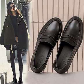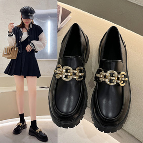 鞋子女2021新款真皮乐福鞋软底中跟链条单鞋女深口...