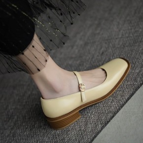 温柔百搭韩版珍珠蝴蝶结全皮玛丽珍2021秋季新款牛...