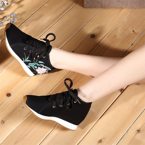 新品尖头运动系列内增高女鞋平底防水台春秋夏季绣花鞋...