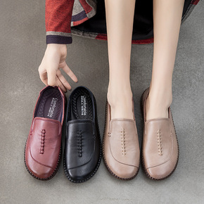 牛皮软底妈妈鞋厚底休闲软皮鞋中老年女鞋防滑套脚老太...
