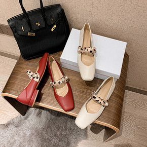 梅义狼2022新春方头淑女方头搭扣浅口单鞋头层牛皮...