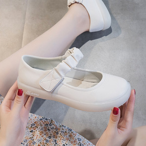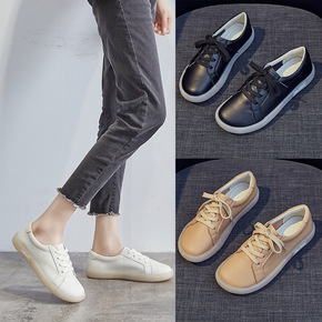 2020春季新款小白鞋女真皮防滑平底单鞋蝴蝶结软底...