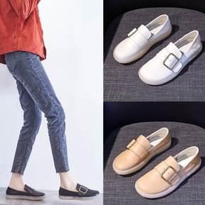 软底单鞋女森女百搭真皮小白鞋懒人休闲学生鞋孕妇平底...