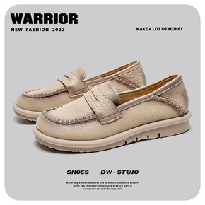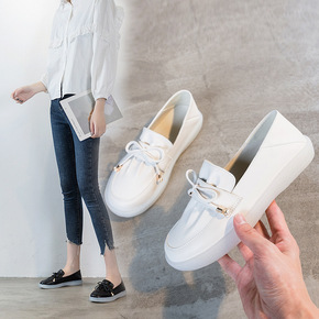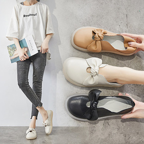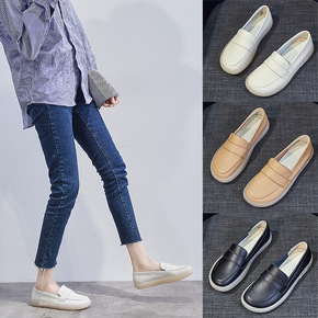 软底单鞋女森女百搭真皮小白鞋英伦懒人豆豆鞋孕妇平底...