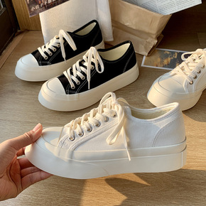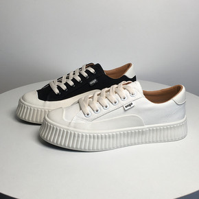 【单鞋】厚底皮面小白鞋饼干松糕鞋底2021黑白色休...