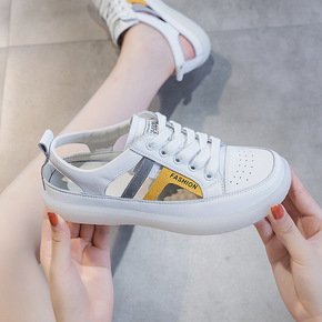 2021春季新款真皮平底小白鞋女休闲牛筋底女鞋软底...
