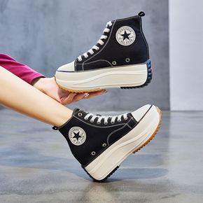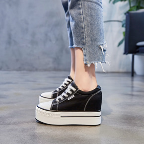2021年新款帆布鞋增高10CM舒适透气厚底耐穿松...