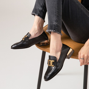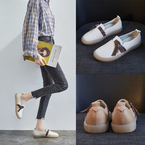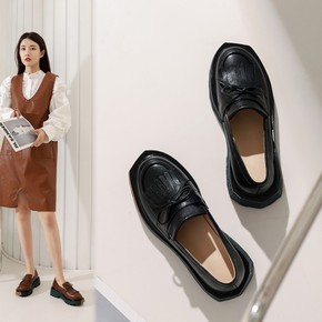 乐福鞋女头层牛皮21秋冬单鞋新款百搭大码豆豆女鞋复...