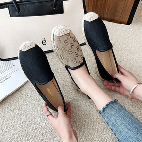 2021春夏新款欧美圆头镂空单鞋女舒适软底平跟休闲...