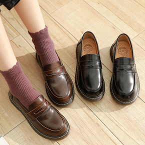 秋季新款粗跟厚底乐福鞋韩版复古小皮鞋法式休闲英伦风...