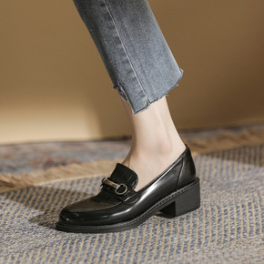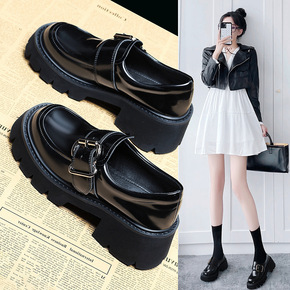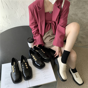 2021年秋季新款复古小皮鞋女英伦风方跟厚底乐福单...