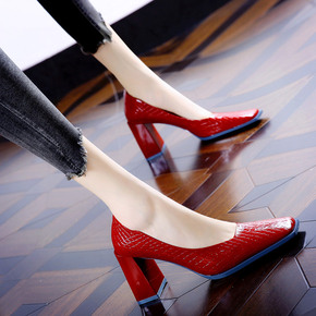 高跟鞋2021秋季新款浅口方头韩版大码时装单鞋粗跟...