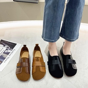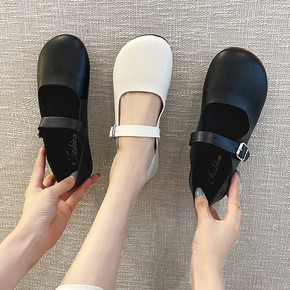 文艺浅口女式单鞋2021春秋季新款韩版圆头平底软底...