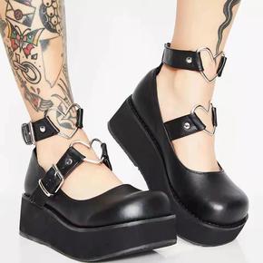 大码单鞋女2021新款欧美圆头厚底PU玛丽珍鞋中帮...
