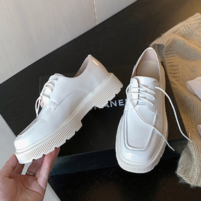 全皮韩版chic显高厚底2021秋新款方头系带布洛...