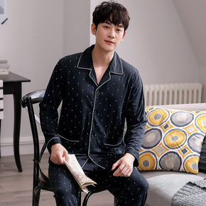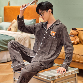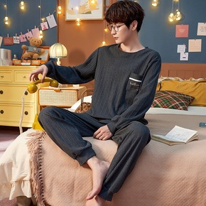 2021年新款男士睡衣春秋款纯棉长袖学生青少年秋冬...