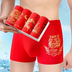 男士红虎纯棉内裤纯棉质秋冬季平角青年本命年舒适透气...