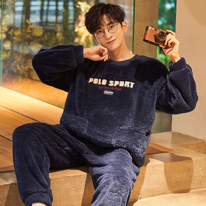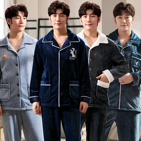 冬季加厚男士法兰绒睡衣开衫冬天男款保暖珊瑚绒可外穿...