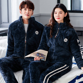 冬季长毛加绒加厚三层保暖夹棉女睡衣珊瑚情侣家居服超...