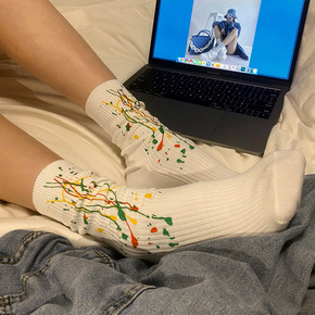 面料名称:棉 产品类别:普通休闲袜 双针袜:是:双针袜 货号:泼墨双针袜 无骨缝制:否:机器...