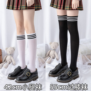 日系jk制服袜小腿袜子潮中筒少女防滑天鹅绒条纹长筒...