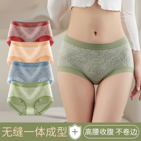日韩高腰收腹内裤女纯棉蕾丝时尚产后收小肚子大码无缝...
