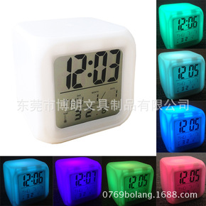 创意七彩四方闹钟 懒人LED夜光闹钟学生用 万年历...