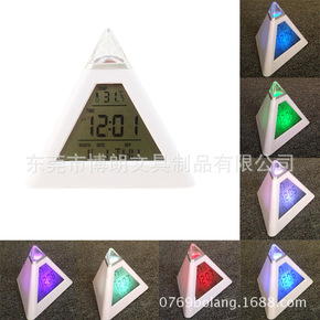 三角型金字塔七彩闹钟 七彩变色心形闹钟 贪睡功能温...