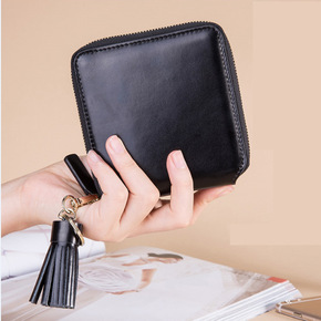 广州新款 韩国拉链短款钱包正方形牛皮真皮拉链女士小...