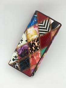 民族风真皮拼接女士钱包零钱包多用途女款包...