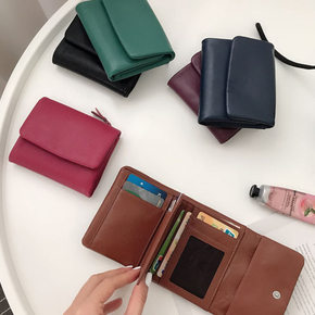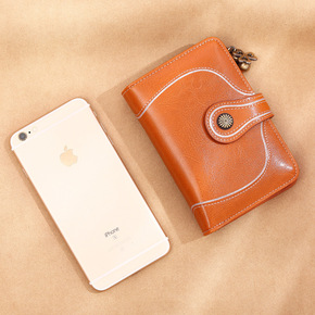 2021新款头层牛皮钱包女短款三折女士钱包春时尚零...