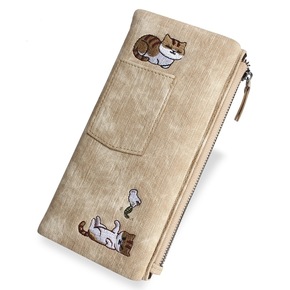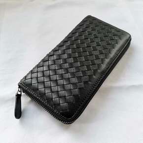 手工羊皮编织双层拉链钱包女士钱包多隔层零钱包...