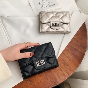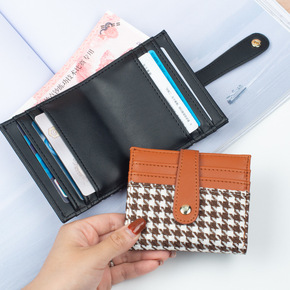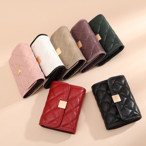羊皮短款钱包女卡包二合一真皮女士菱格零钱包证件包新...