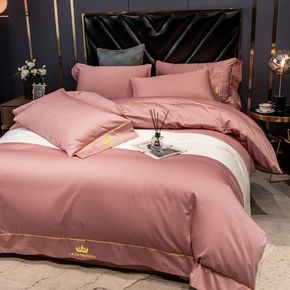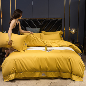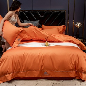 轻奢全棉四件套亲肤纯色纯棉高档刺绣床笠款民宿酒店套...