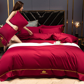 婚庆四件套纯棉全棉大红色刺绣结婚床上用品新婚喜被套...