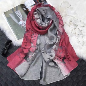 21跨境春秋冬款时尚双色镂空渐变丝巾围巾女剪花欧根...