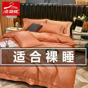 【北极绒】60s天丝贡缎刺绣纯色四件套床单被套冰丝...