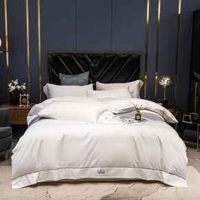 全棉40支贡缎刺绣酒店风纯棉四件套床单床笠被套纯色...