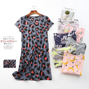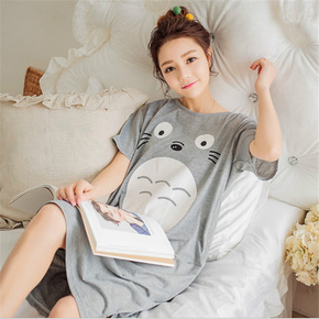 夏季女士针织棉宽松睡衣短袖卡通加肥加大龙猫睡裙家居...