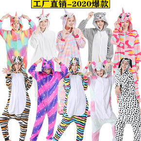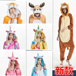 厂家批发秋冬卡通动物连体睡衣黄色兔子摇粒绒情侣居家...