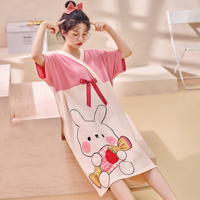 2022夏季新款睡衣女全棉薄款短袖套头睡裙可爱少女...
