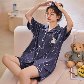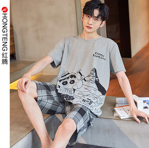夏季新款日系睡衣少女心卡通同款蜡笔小新开衫短袖短裤...